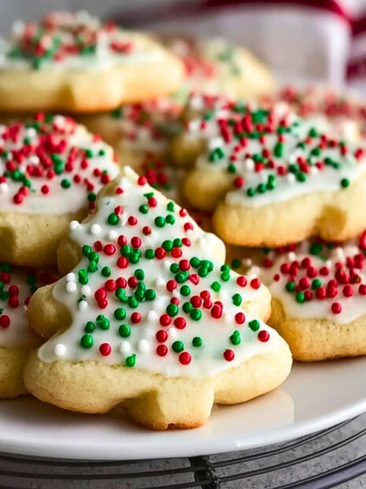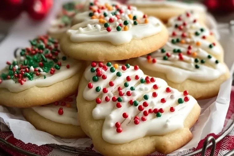 Ces biscuits de Noël fondants sont de tendres sablés à la vanille, décorés d’un glaçage blanc crémeux et de petites perles colorées, parfaits pour les fêtes, à préparer facilement avec les enfants.