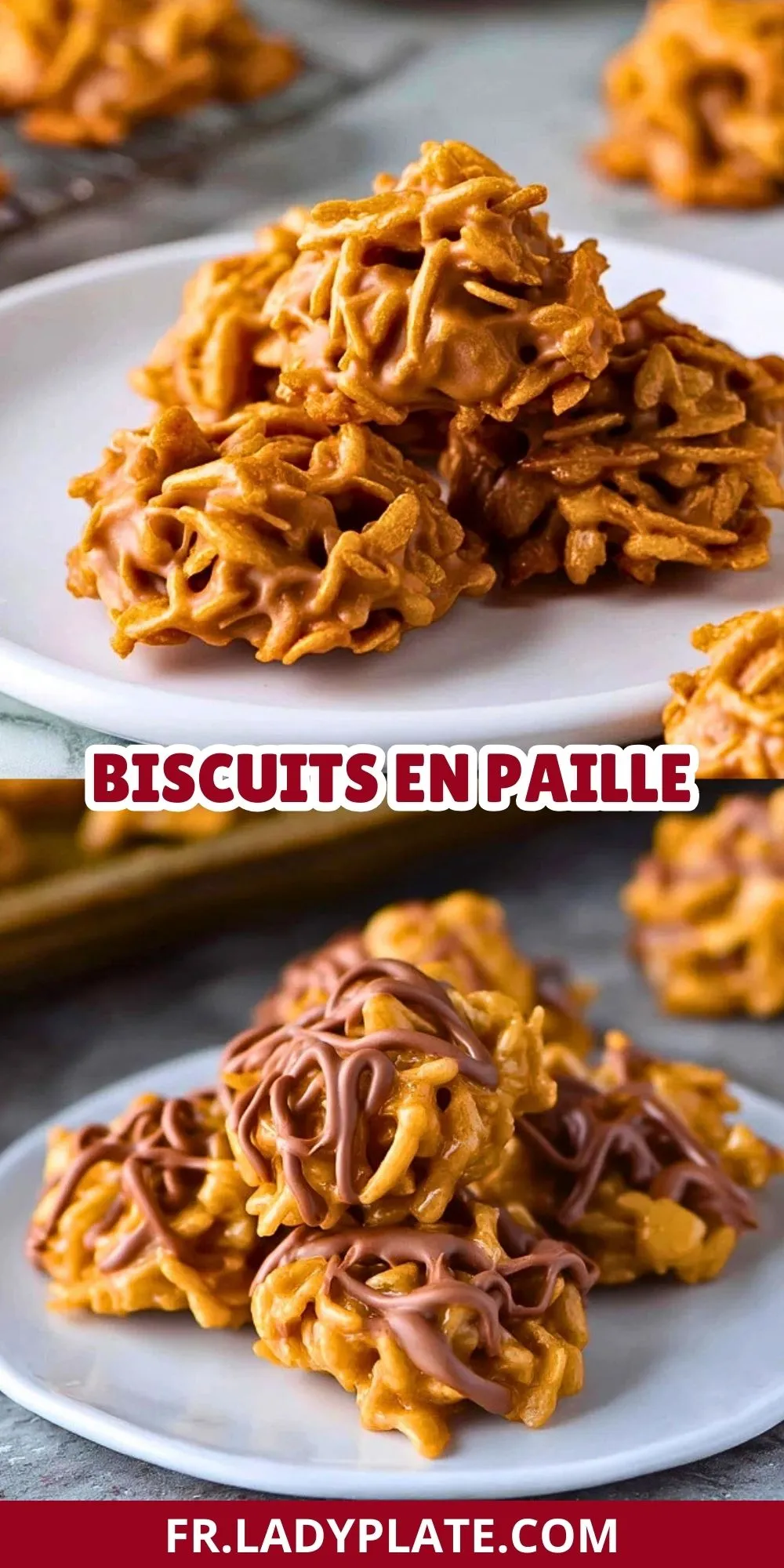 Les Biscuits en Paille sont des bouchées croustillantes à base de pétales de maïs, enrobées d’un mélange fondant de chocolat, miel et beurre. Faciles, rapides et sans cuisson, elles sont idéales pour un goûter, un café gourmand ou à offrir lors des fêtes.