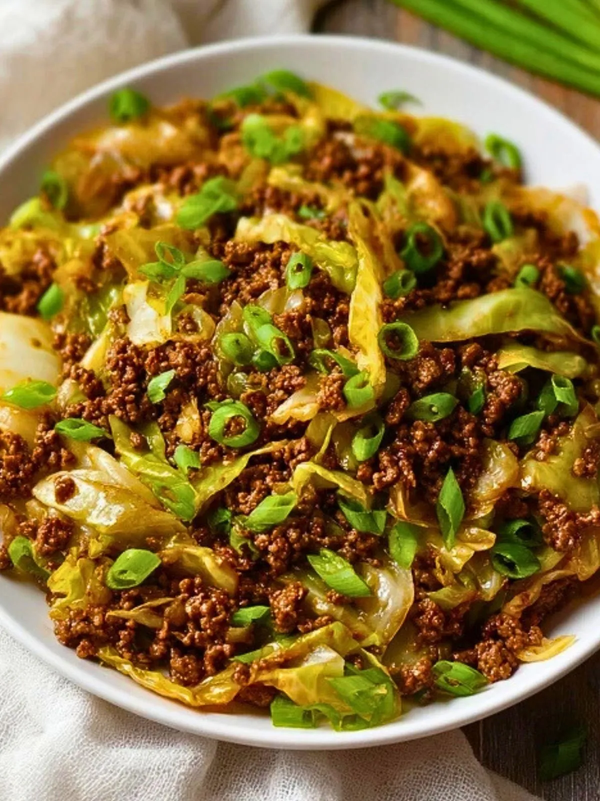Ici, le chou remplace le riz ou les nouilles et devient la base du plat, ce qui permet de réduire considérablement les glucides tout en augmentant la part de légumes. Le boeuf haché, rapidement sauté, apporte des protéines de qualité et une texture fondante qui se marie à merveille avec le croquant tendre du chou. Résultat : un bol complet, réconfortant et compatible avec une alimentation plus légère.