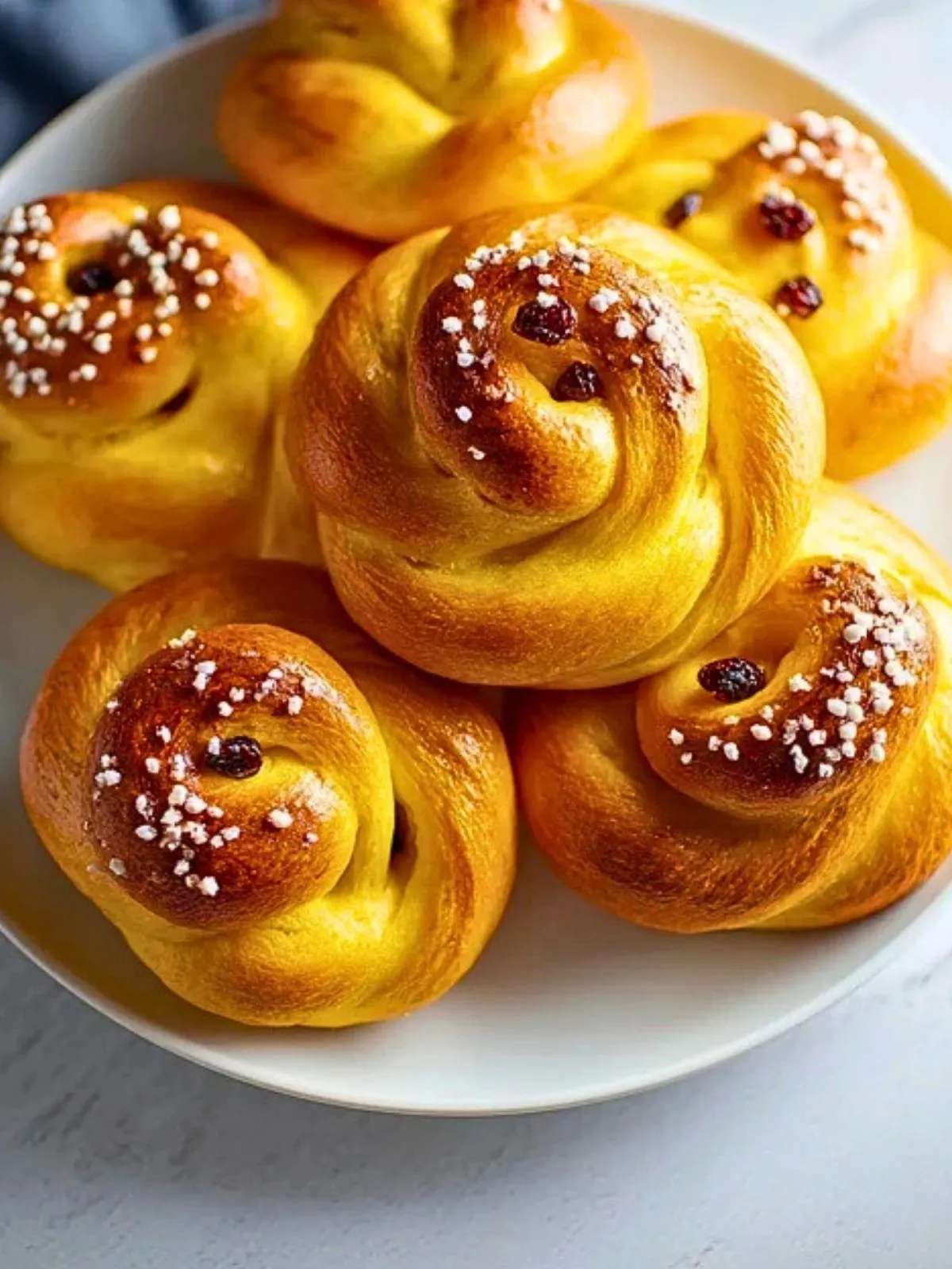 La tradition veut que ces brioches dorées représentent la lumière et la chaleur pendant les longues nuits d’hiver. Le safran, épice précieuse, apporte non seulement sa couleur éclatante mais aussi un parfum délicat qui rend ces buns uniques et festifs.