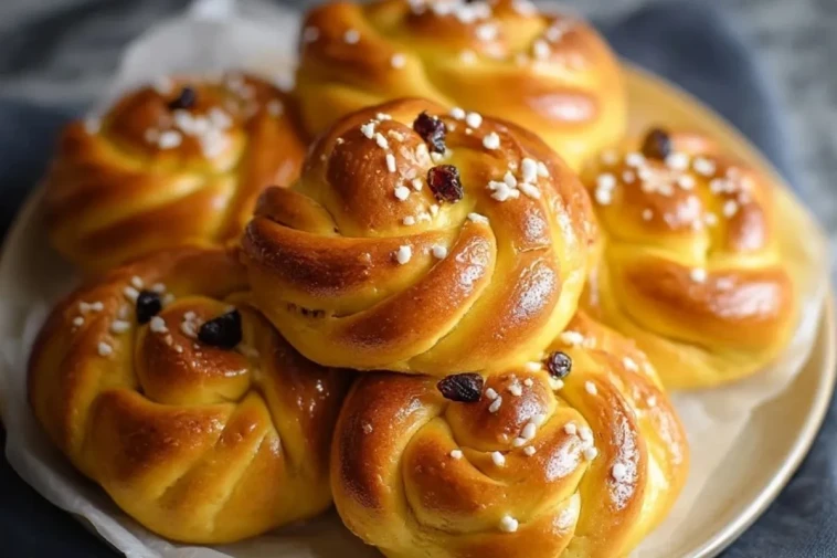 Dorés, délicatement parfumés et tressés en jolies spirales, les Buns Au Safran De Sainte-Lucie illuminent les tables hivernales. Leur mie moelleuse, subtilement sucrée et infusée de safran, offre une saveur chaleureuse et raffinée qui évoque les traditions scandinaves. Préparés traditionnellement pour la fête de Sainte-Lucie en décembre, ces petits pains briochés symbolisent la lumière au cœur de l’hiver.