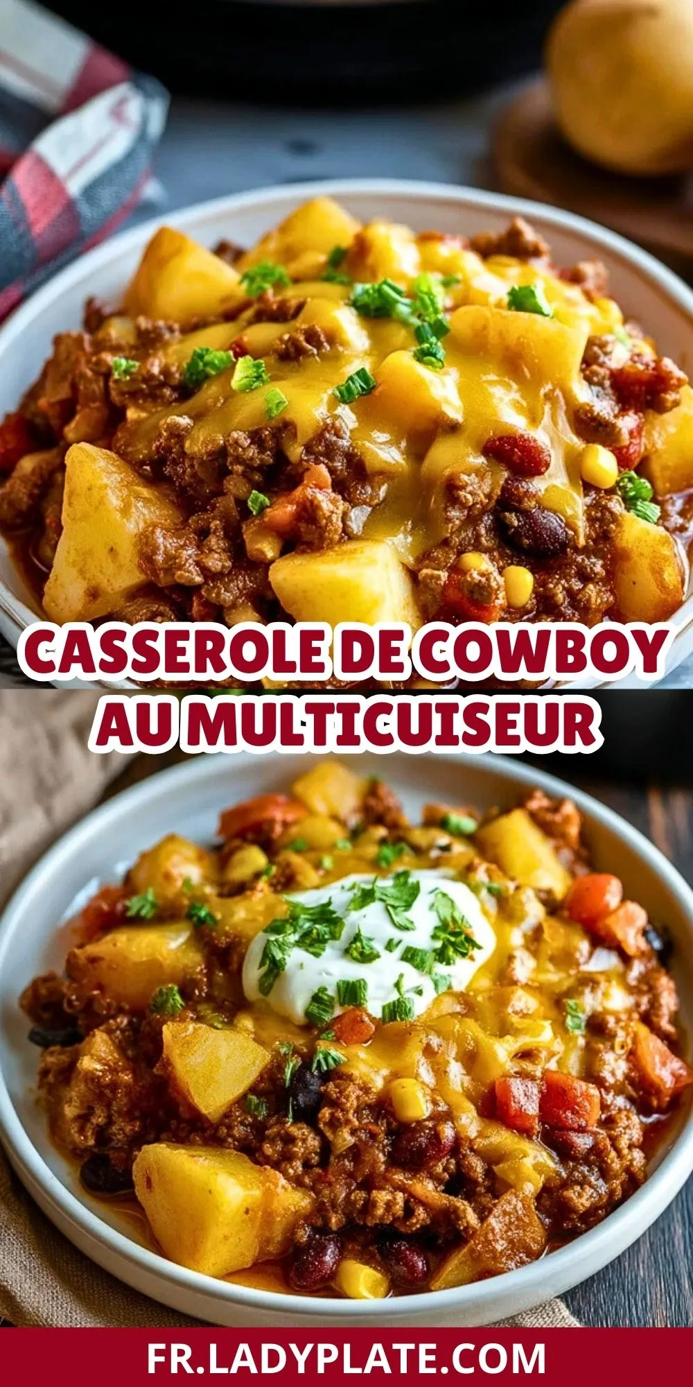 Cette casserole de cowboy au multicuiseur rassemble tout ce que l’on aime dans un plat familial : une viande mijotée savoureuse, des légumes fondants et une touche généreuse de fromage gratiné. Inspirée des repas rustiques du Far West, elle combine simplicité et richesse des saveurs dans un seul bol réconfortant.