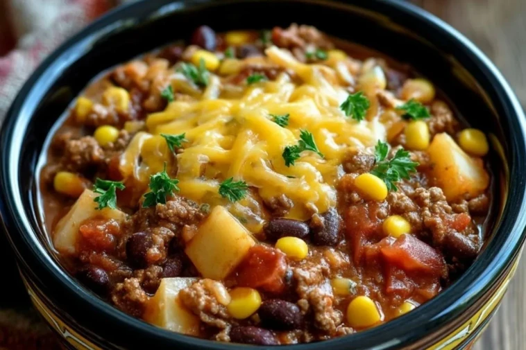 Cette casserole de cowboy au multicuiseur rassemble tout ce que l’on aime dans un plat familial : une viande mijotée savoureuse, des légumes fondants et une touche généreuse de fromage gratiné. Inspirée des repas rustiques du Far West, elle combine simplicité et richesse des saveurs dans un seul bol réconfortant. Préparée au multicuiseur, elle devient encore plus pratique. Les ingrédients cuisent ensemble, s’imprègnent d’épices et donnent une texture épaisse et gourmande, parfaite pour un dîner sans complication en semaine.