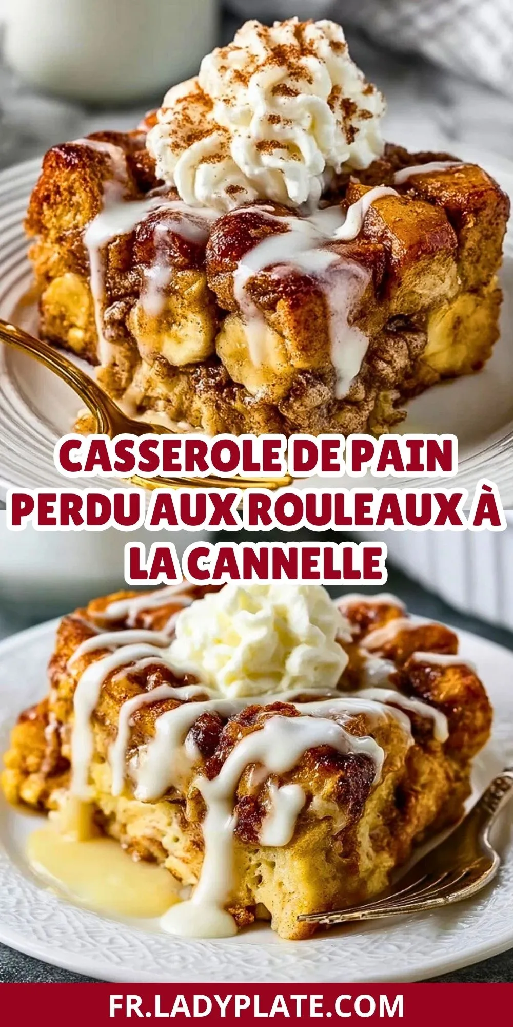 Une casserole moelleuse de pain perdu, réalisée à partir de rouleaux à la cannelle, nappée d’un glaçage fondant à la vanille. Le brunch ou goûter familial par excellence : parfumé, fondant et ultra gourmand.