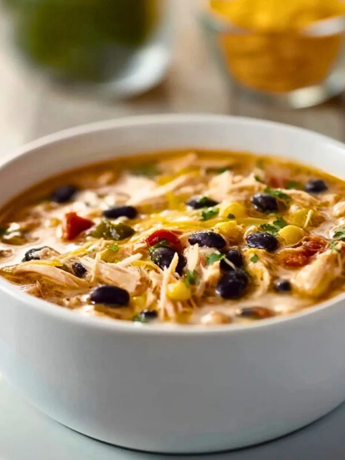 Ce chili blanc épais au poulet et haricots noirs est un plat complet, crémeux et réconfortant, parfait pour un dîner familial. Entre le poulet tendre, les haricots fondants, le maïs légèrement sucré et les épices douces, il offre une texture généreuse et des saveurs équilibrées qui plaisent en toute saison.