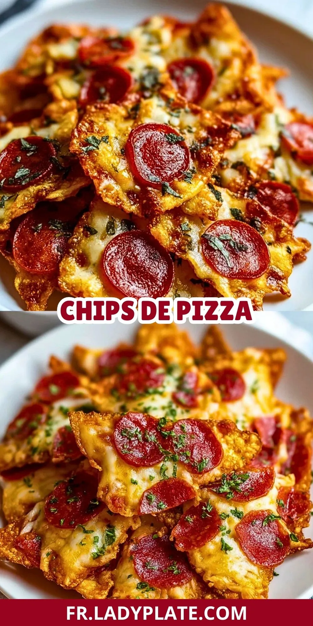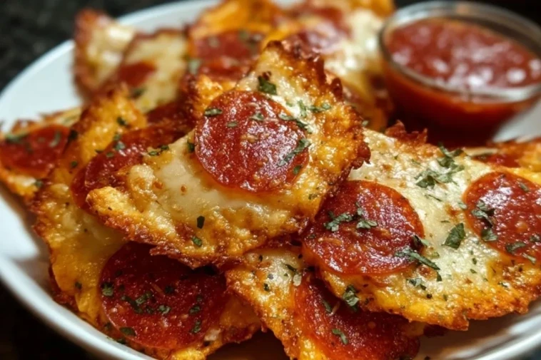 Les chips de pizza sont une idée apéritive à la fois simple, croustillante et terriblement gourmande. Elles reprennent les saveurs emblématiques d’une pizza pepperoni gratinée, mais dans un format léger, doré et facile à picorer. À la sortie du four, les bords deviennent croustillants, le fromage prend une belle couleur ambrée et le pepperoni apporte ce petit côté relevé qui donne immédiatement envie d’en reprendre.