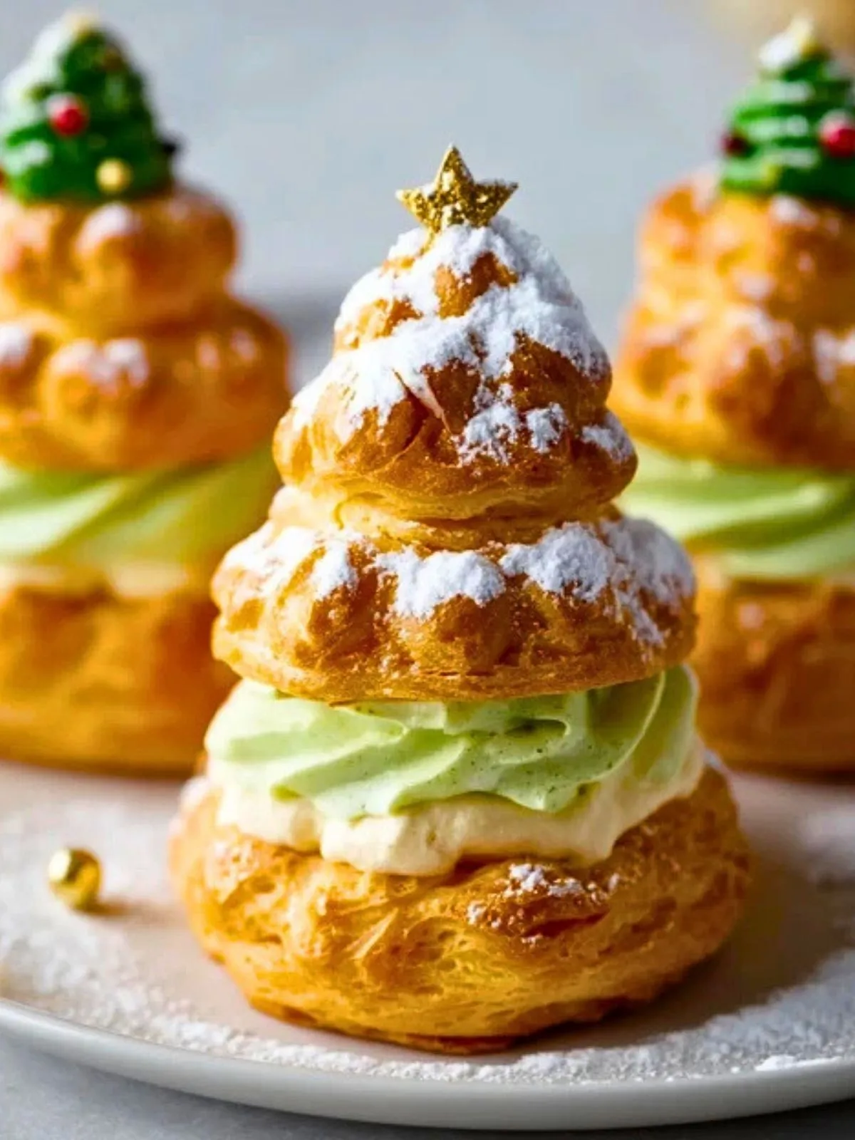 Des petits choux dorés garnis de crème vanille ou pistache, montés en forme de sapin pour un dessert de fête spectaculaire et gourmand. Parfaits à préparer avec les enfants ou pour épater vos invités lors d’un repas festif.