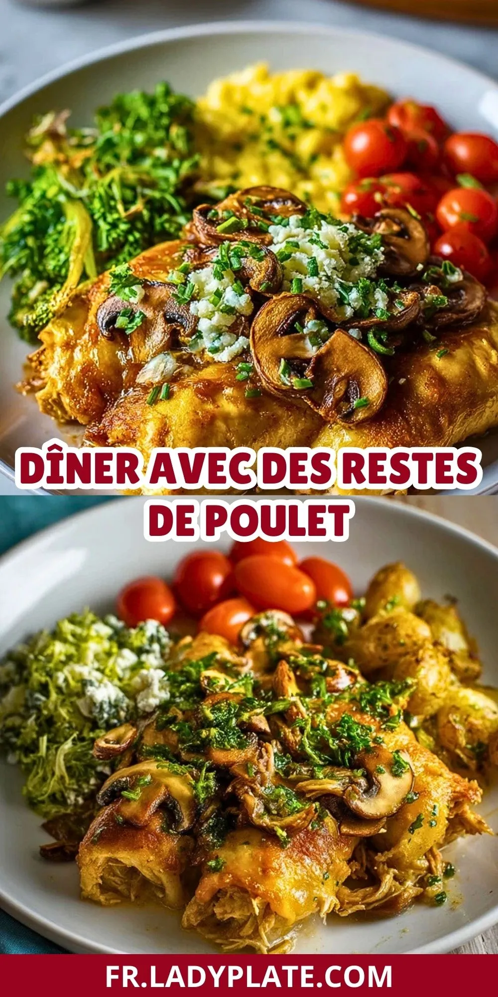 Épinglez cette recette sur votre tableau Pinterest “repas du soir” pour la retrouver facilement les jours où il vous reste du poulet dans le frigo et peu de temps pour cuisiner.