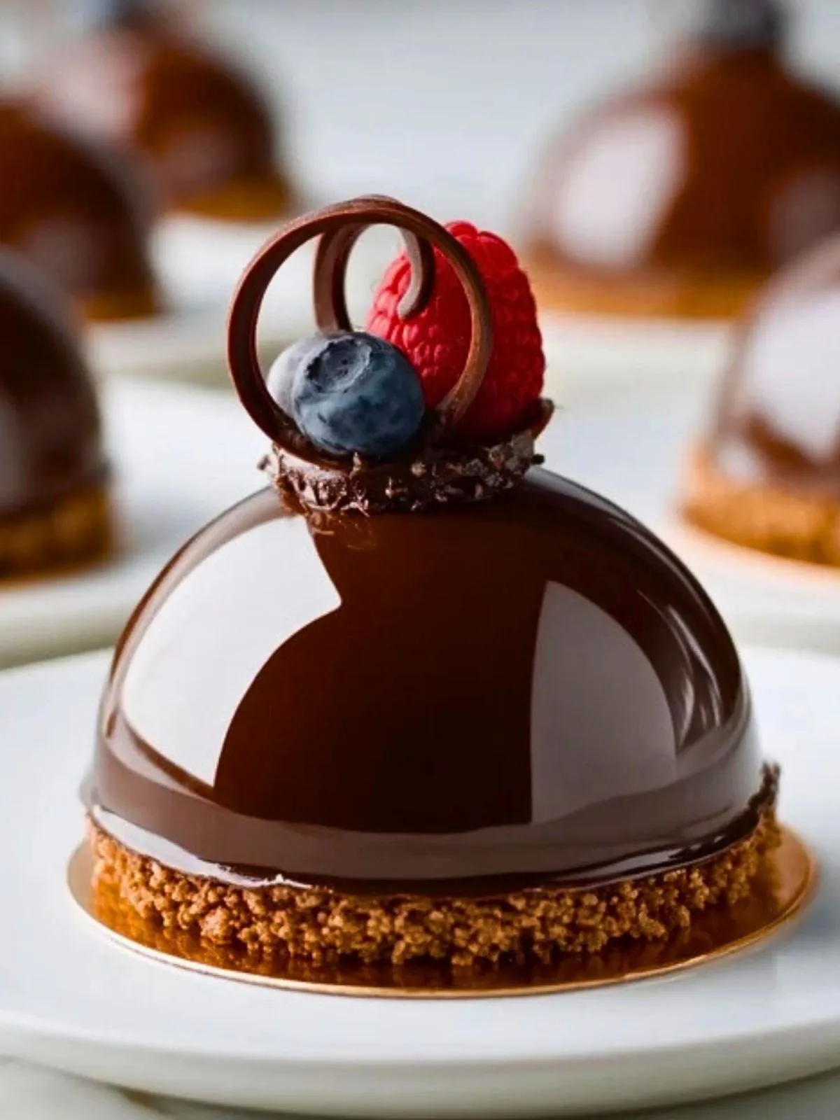 Le secret de ce dessert réside dans l’équilibre parfait entre intensité du chocolat, onctuosité du mascarpone et fraîcheur fruitée. Sa forme en dôme évoque l’élégance des plus belles pâtisseries françaises, tandis que la finition miroir captive le regard. Ce dessert se prépare à l’avance, ce qui en fait un allié idéal pour les grandes occasions.