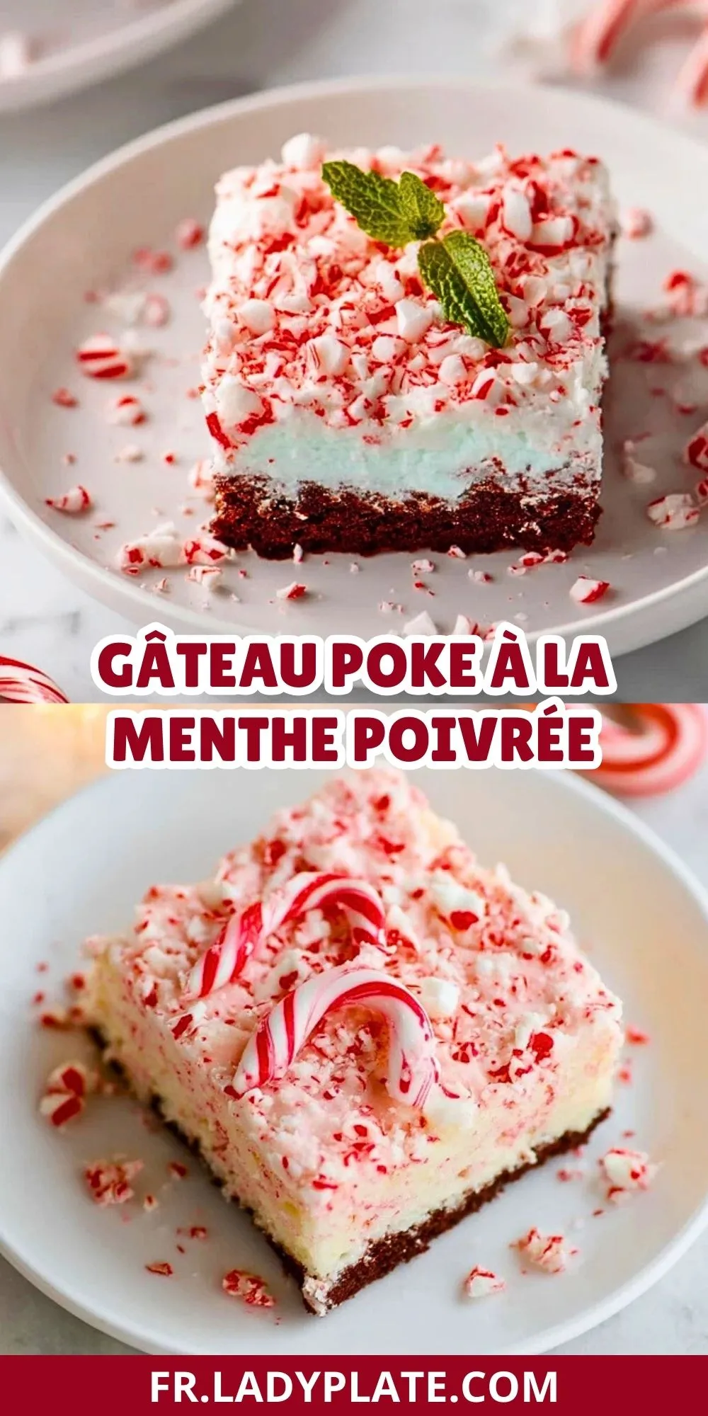 Ce gâteau poke à la menthe poivrée associe une base chocolatée ultra-moelleuse, imbibée d’un sirop de menthe, recouverte de chantilly et de bonbons à la menthe concassés. Frais, festif et facile, il fait sensation à chaque bouchée, parfait pour les fêtes de Noël ou un goûter d’hiver original.