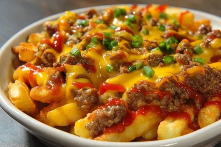 C’est la recette parfaite pour un soir de match, une soirée films ou un dîner sans chichi entre amis. On prépare les frites, une garniture de viande façon burger, une sauce au cheddar ultra onctueuse, puis on passe le tout au four pour obtenir un plat généreux, gratiné et irrésistible.