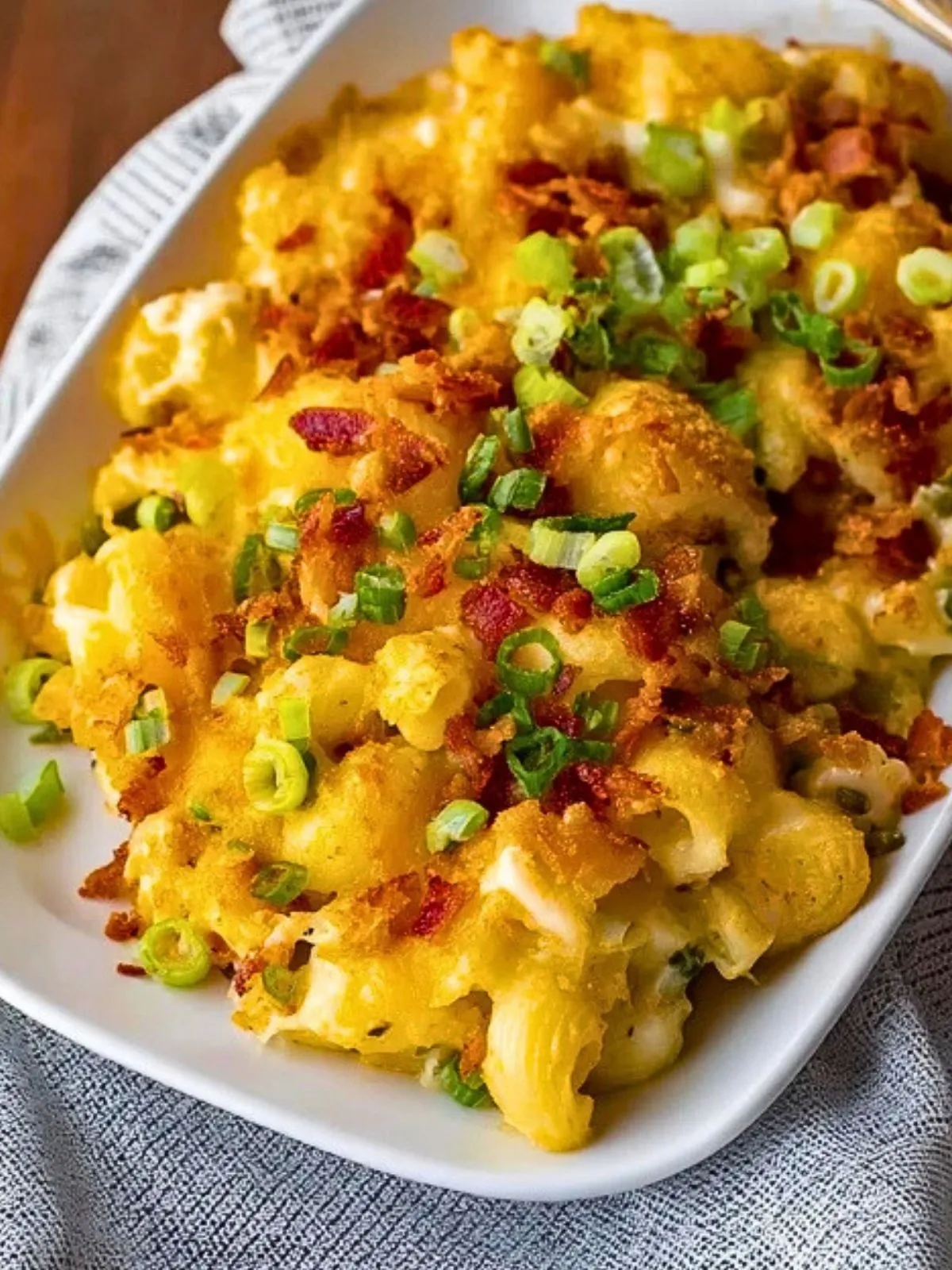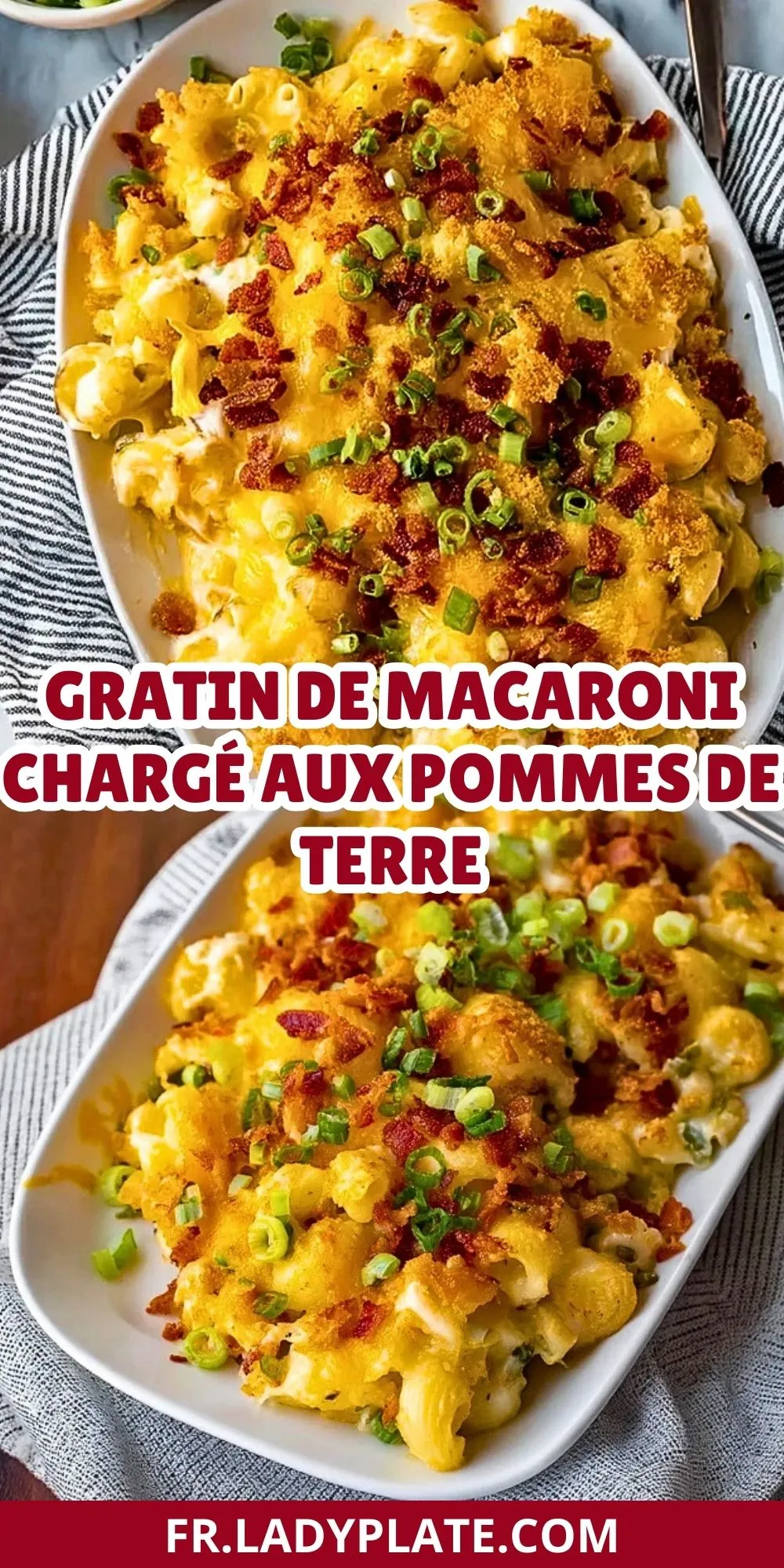 Le gratin de macaroni chargé aux pommes de terre est un plat convivial, ultra-gourmand et réconfortant, parfait pour les grandes tablées ou les soirées d’hiver. Ce gratin mêle la douceur des pommes de terre fondantes, le moelleux des macaronis et la générosité du fromage gratiné, relevé par des éclats de bacon croustillant et de la ciboulette fraîche. Chaque bouchée est une explosion de textures et de saveurs, alliant le croustillant, le fondant et la gourmandise.