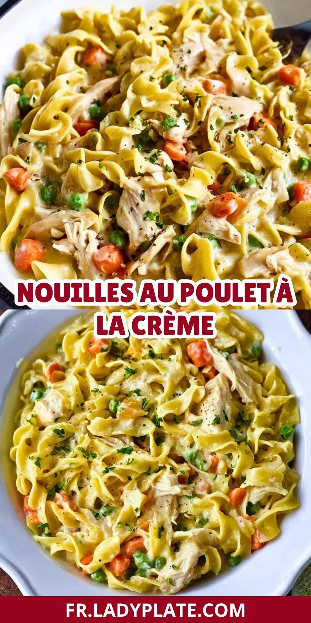 Un grand classique familial, savoureux et ultra crémeux. Les nouilles s’enrobent d’une sauce onctueuse à la crème fraîche, avec de tendres morceaux de poulet, des carottes fondantes et des petits pois pour la fraîcheur. Une recette qui plaît à tous, prête en un rien de temps !