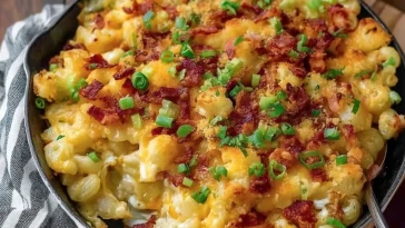 Gratin de macaroni chargé aux pommes de terre