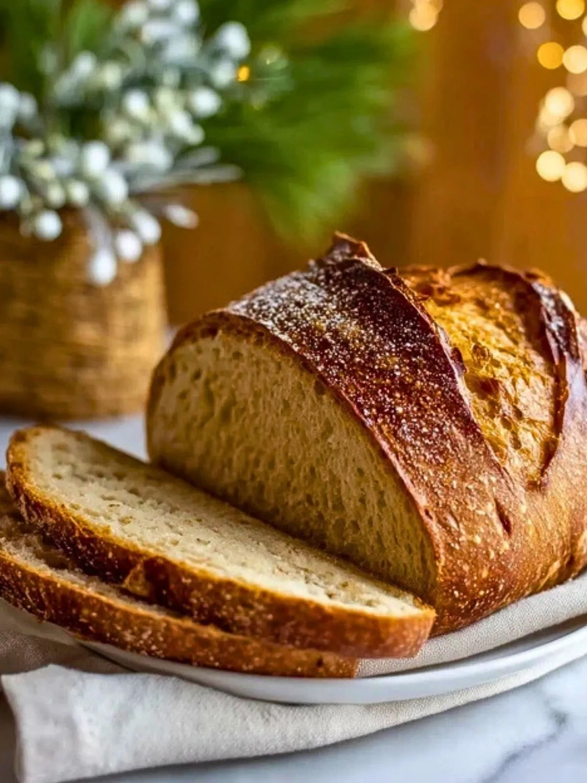Ce pain est délicieux encore tiède, légèrement tartiné de beurre ou accompagné de fromages de fête. Il peut se conserver 2 à 3 jours enveloppé dans un torchon propre ou dans un sac à pain en tissu. Pour une conservation plus longue, tranchez-le et congelez-le : il suffira de le réchauffer quelques minutes au four pour lui redonner son croustillant.
