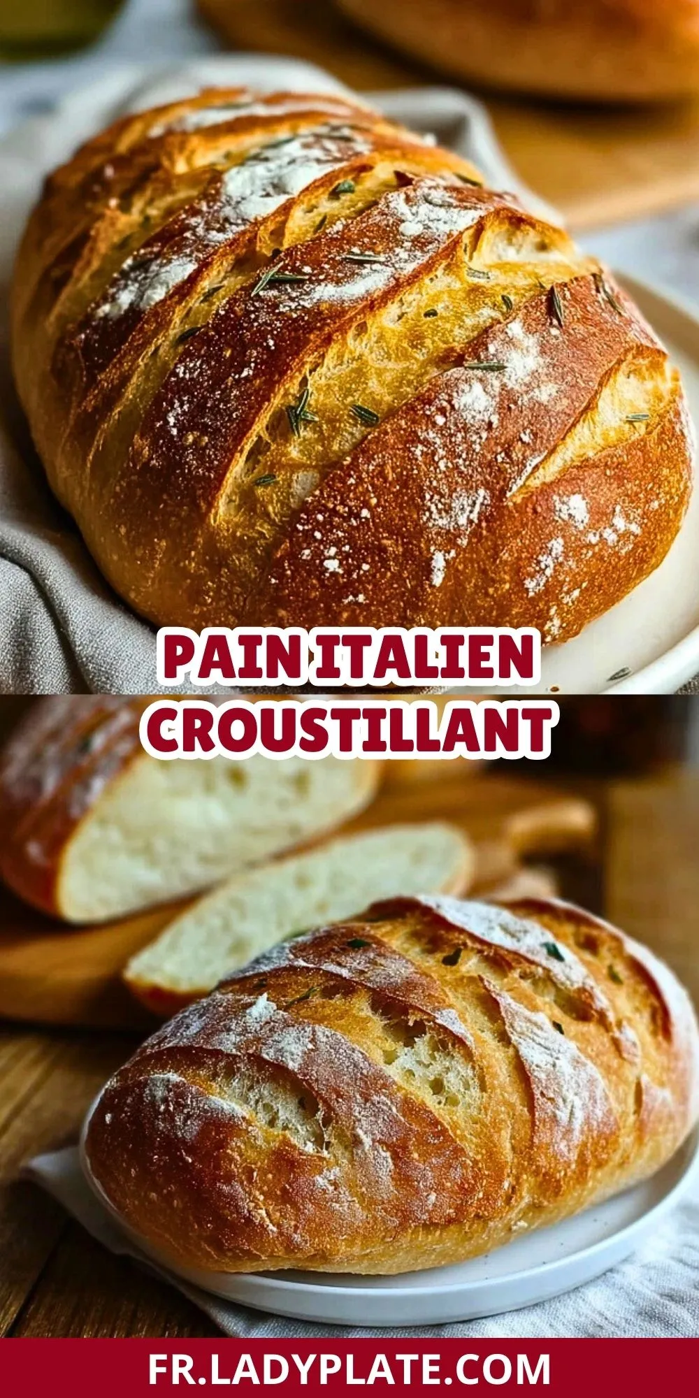 Invitez l’Italie à votre table avec ce Pain Italien Croustillant, une miche dorée à la croûte généreuse et à la mie moelleuse, infusée de notes d’huile d’olive et de fines herbes. Simple à réaliser à la maison, il accompagne aussi bien les plats familiaux que les apéritifs entre amis. À peine sorti du four, il embaume la cuisine de parfums méditerranéens irrésistibles.