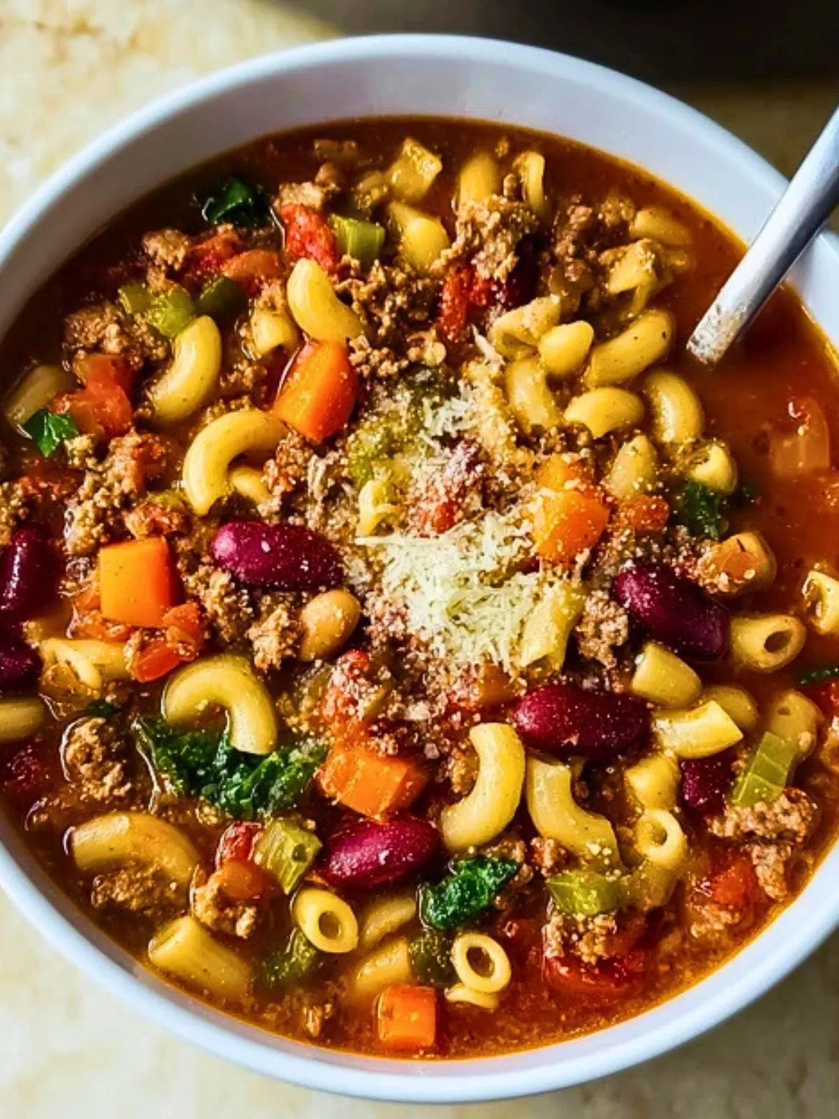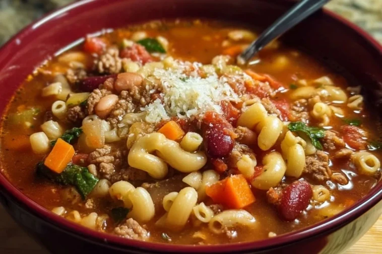 - Soupe minestrone riche en légumes et en pâtes.