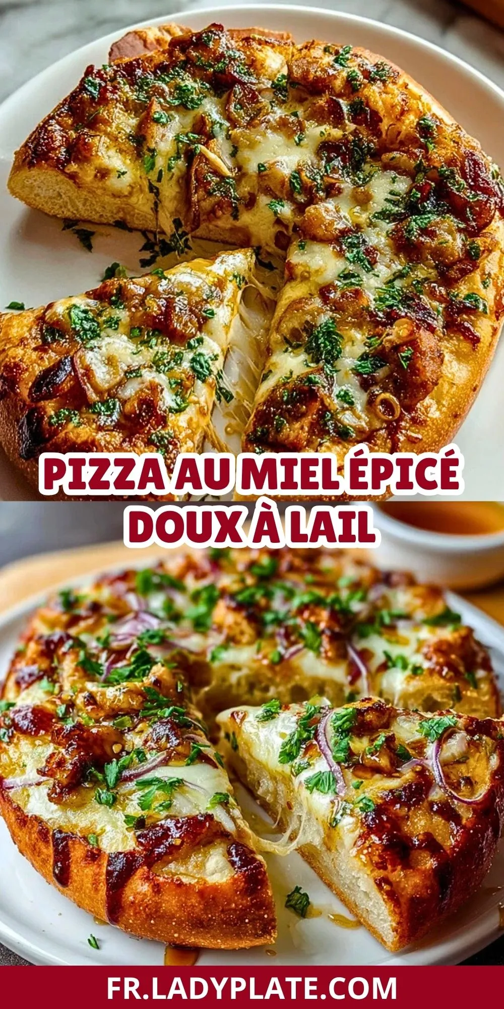 Vous pouvez préparer la pâte, le miel épicé et le mélange ail-oignon quelques heures à l’avance. Gardez la pâte au frais si elle est déjà étalée, et conservez les garnitures dans des récipients hermétiques au réfrigérateur. Assemblez la pizza juste avant de l’enfourner pour garder une pâte bien croustillante.
