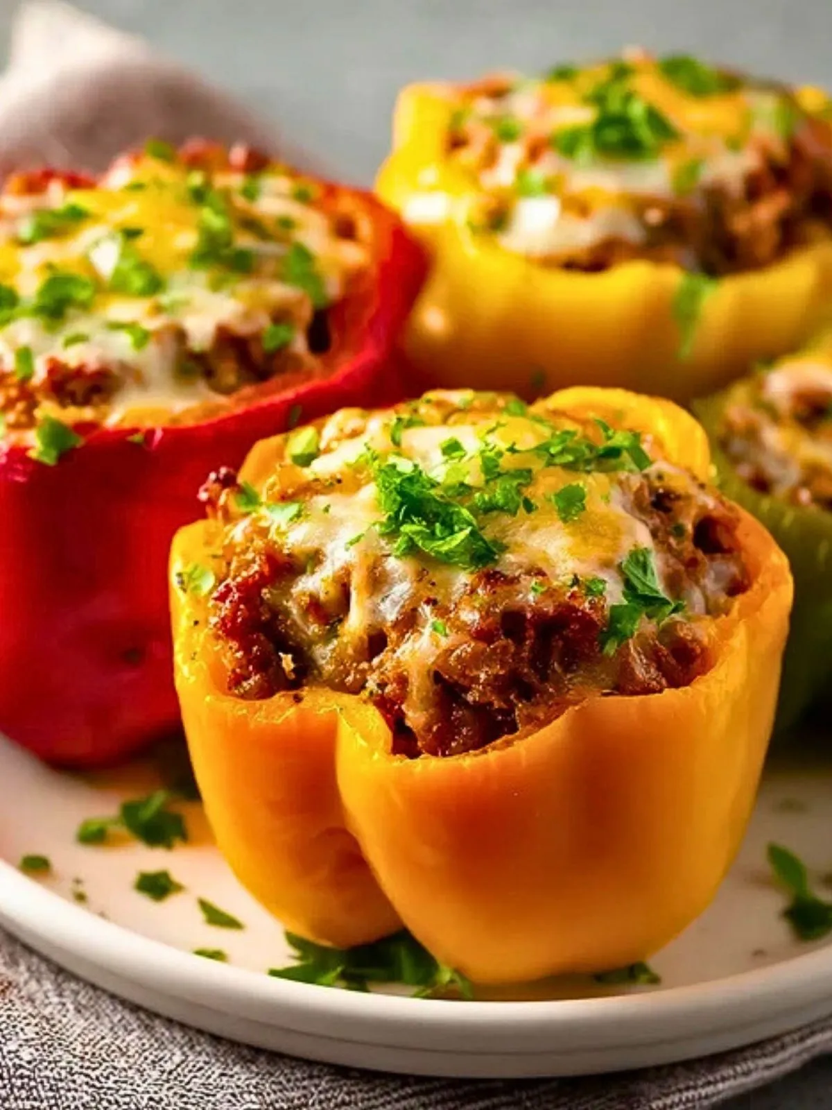 Ces poivrons farcis au bœuf haché sont un plat complet et réconfortant, où des poivrons colorés sont garnis d’une farce savoureuse au bœuf, riz et tomate, puis gratinés au fromage pour un résultat généreux et parfumé, parfait pour un dîner familial au four.