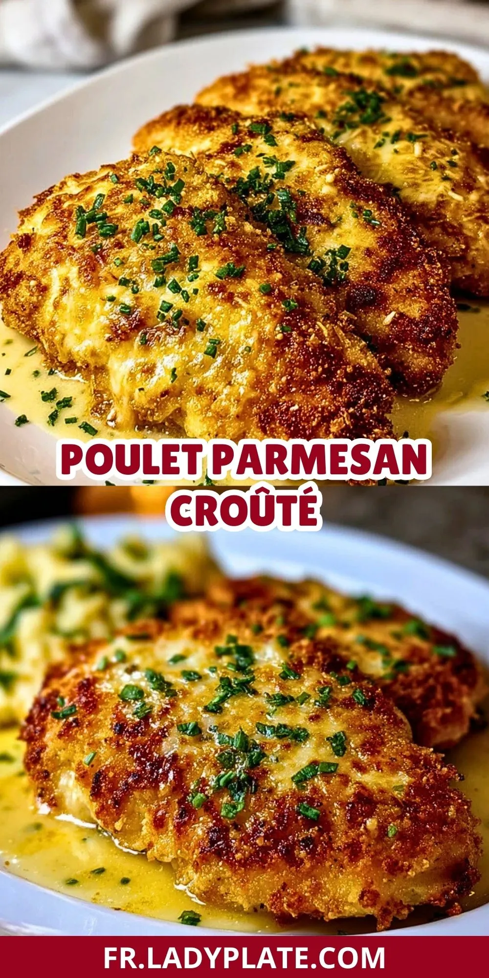 Keywords: poulet parmesan, panure croustillante, plat principal, fromage