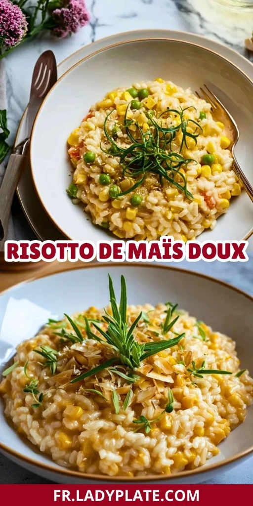 Épinglez cette recette sur votre tableau Pinterest cuisine végétarienne pour la retrouver facilement. Dites-moi en commentaires comment votre risotto de maïs doux s’est passé : avez-vous testé d’autres légumes ou ajouté une pointe d’épices ? Partagez vos variantes et questions, et aidons-nous à cuisiner ensemble des plats toujours plus savoureux !