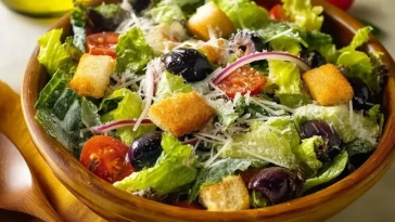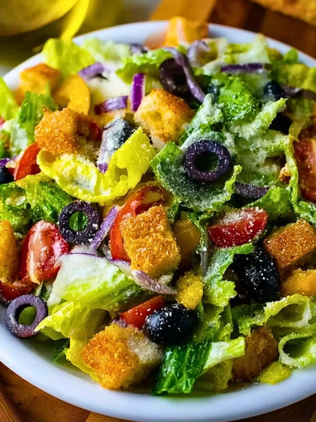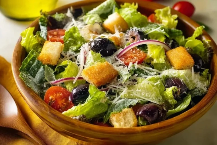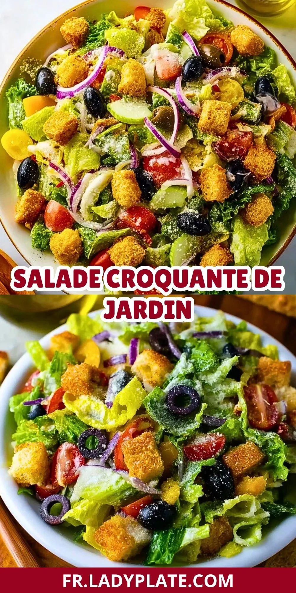 La Salade Croquante de Jardin est une salade fraîche, colorée et facile à préparer, idéale pour accompagner un déjeuner léger ou un dîner convivial. Avec sa laitue romaine croquante, ses tomates cerises juteuses, ses olives noires, ses croûtons dorés et son parmesan, elle offre un bel équilibre entre fraîcheur, gourmandise et simplicité.