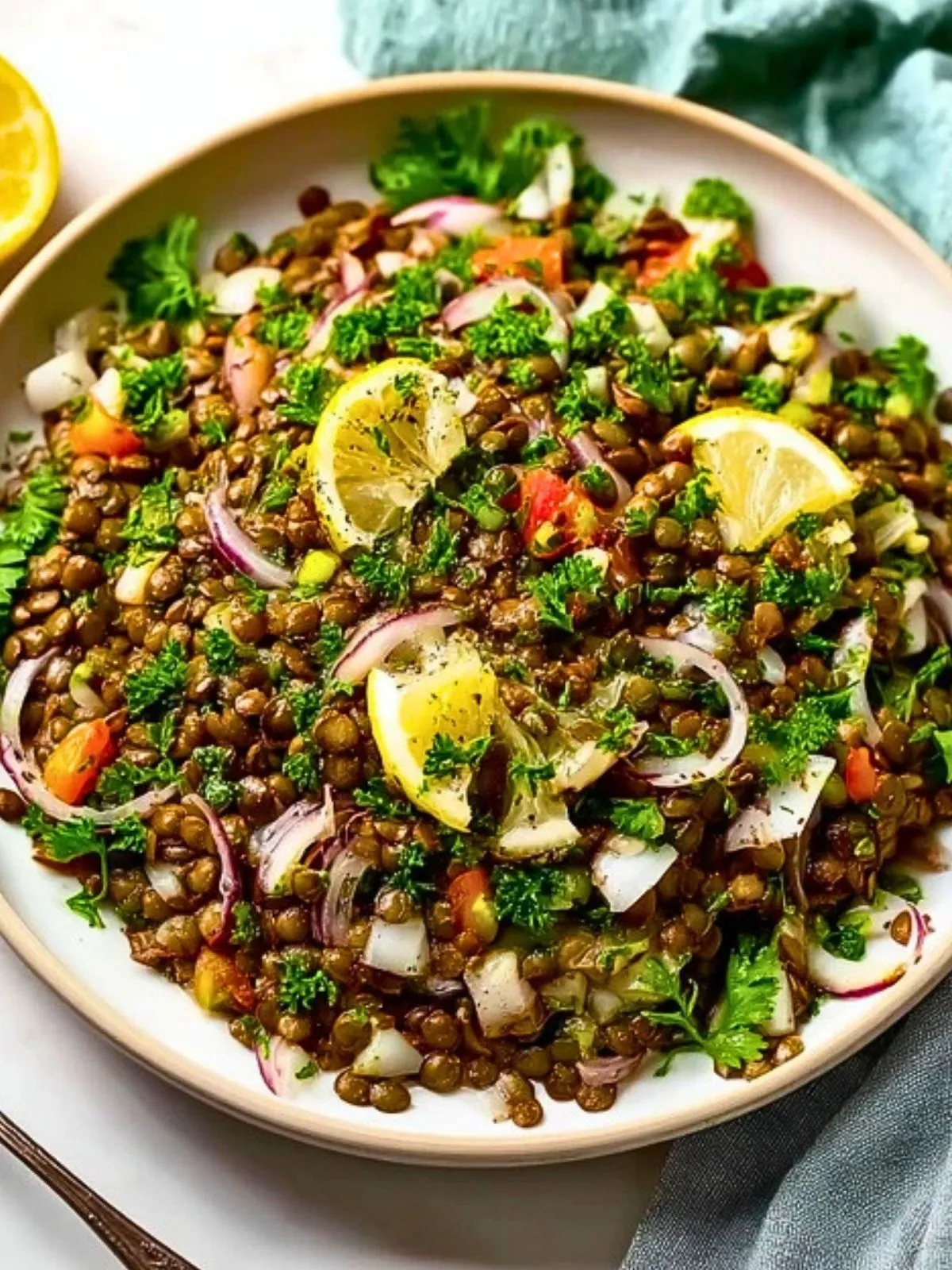 Keywords: salade libanaise aux lentilles, salade de lentilles, salade méditerranéenne, salade citronnée, recette libanaise
