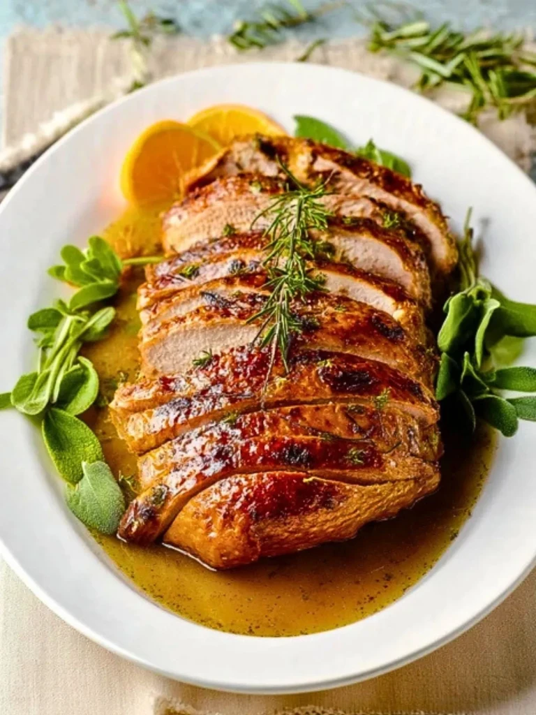 Un rôti de poitrine de dinde tendre et juteux, parfumé grâce à une saumure maison et garni d’une farce moelleuse aux herbes fraîches et à l’orange. Un plat festif et familial qui garantit une viande savoureuse, jamais sèche, et qui s’adapte à toutes les grandes occasions.