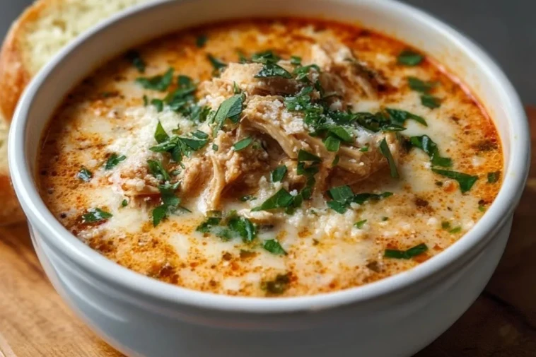 La soupe crème de poulet parmesan est une soupe onctueuse, généreuse et réconfortante, parfaite pour les repas frais ou les dîners simples en famille. Entre le poulet fondant, le bouillon crémeux et la richesse du parmesan, elle offre une texture veloutée et une saveur profonde qui transforment des ingrédients simples en un plat chaleureux et complet.