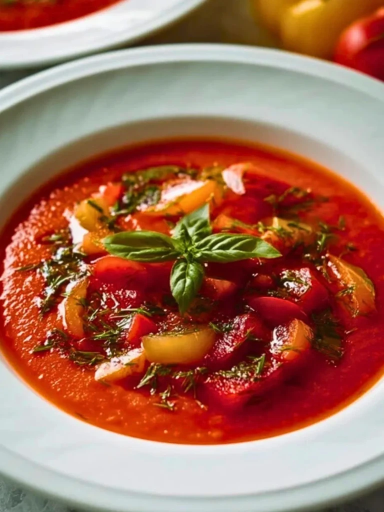Une soupe de tomates veloutée, mijotée doucement avec légumes du potager, basilic frais et huile d’olive. Réconfortante, saine et idéale pour les soirs pressés, elle séduit petits et grands. À servir bien chaude, accompagnée de pain de campagne ou de croûtons dorés.