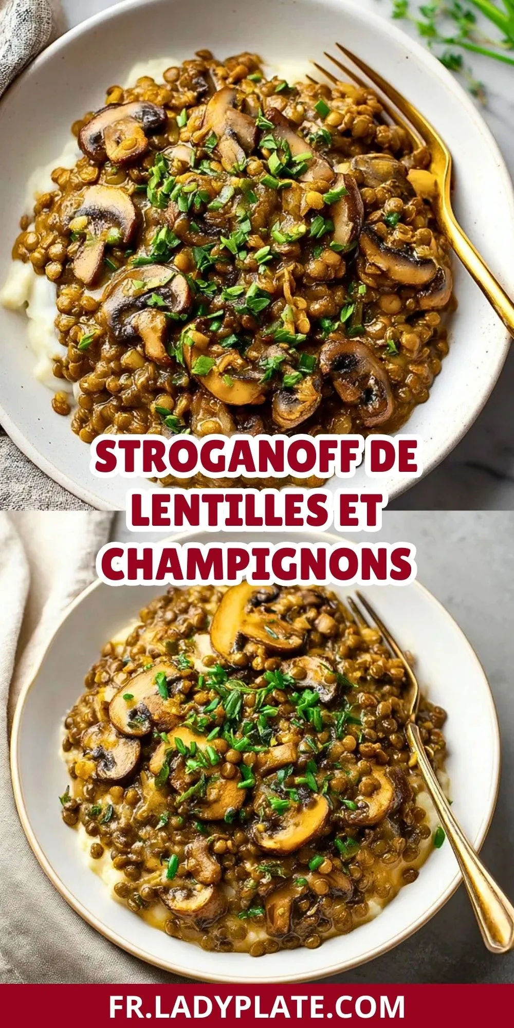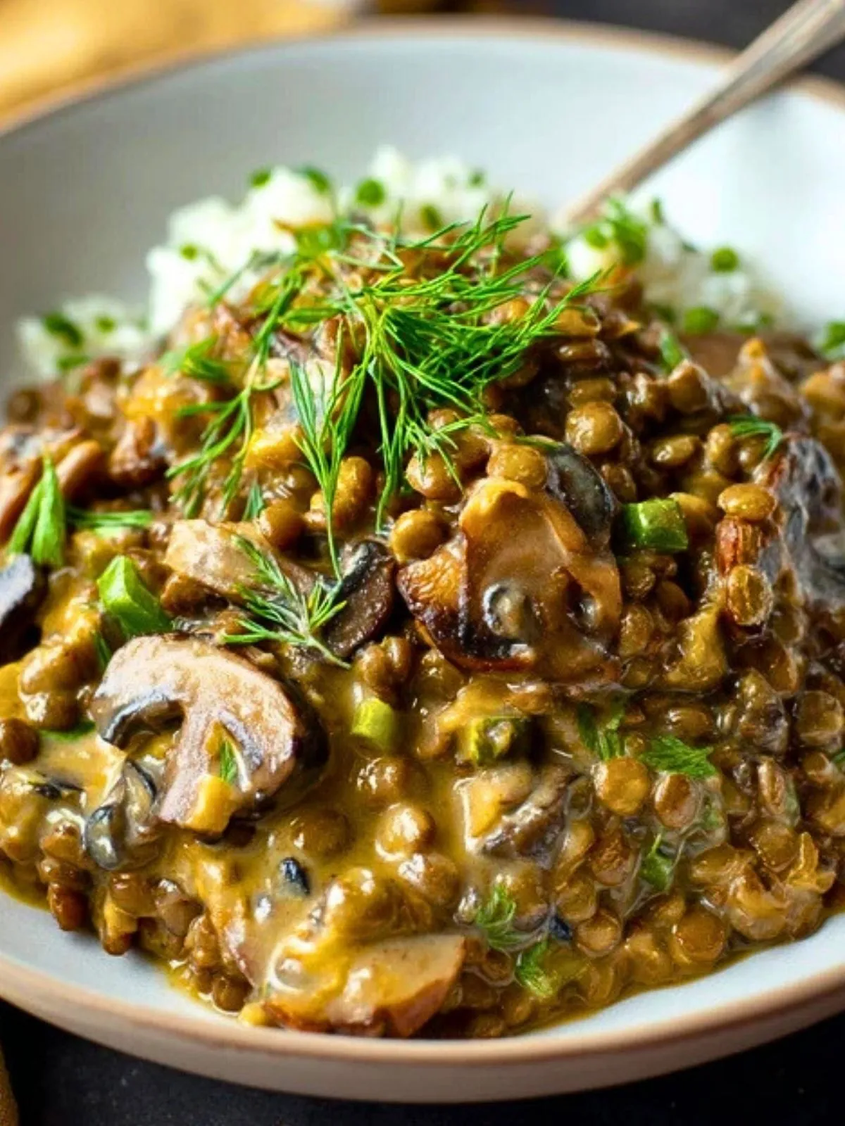 Keywords: lentilles, champignons, végétarien, stroganoff, hiver, plat mijoté