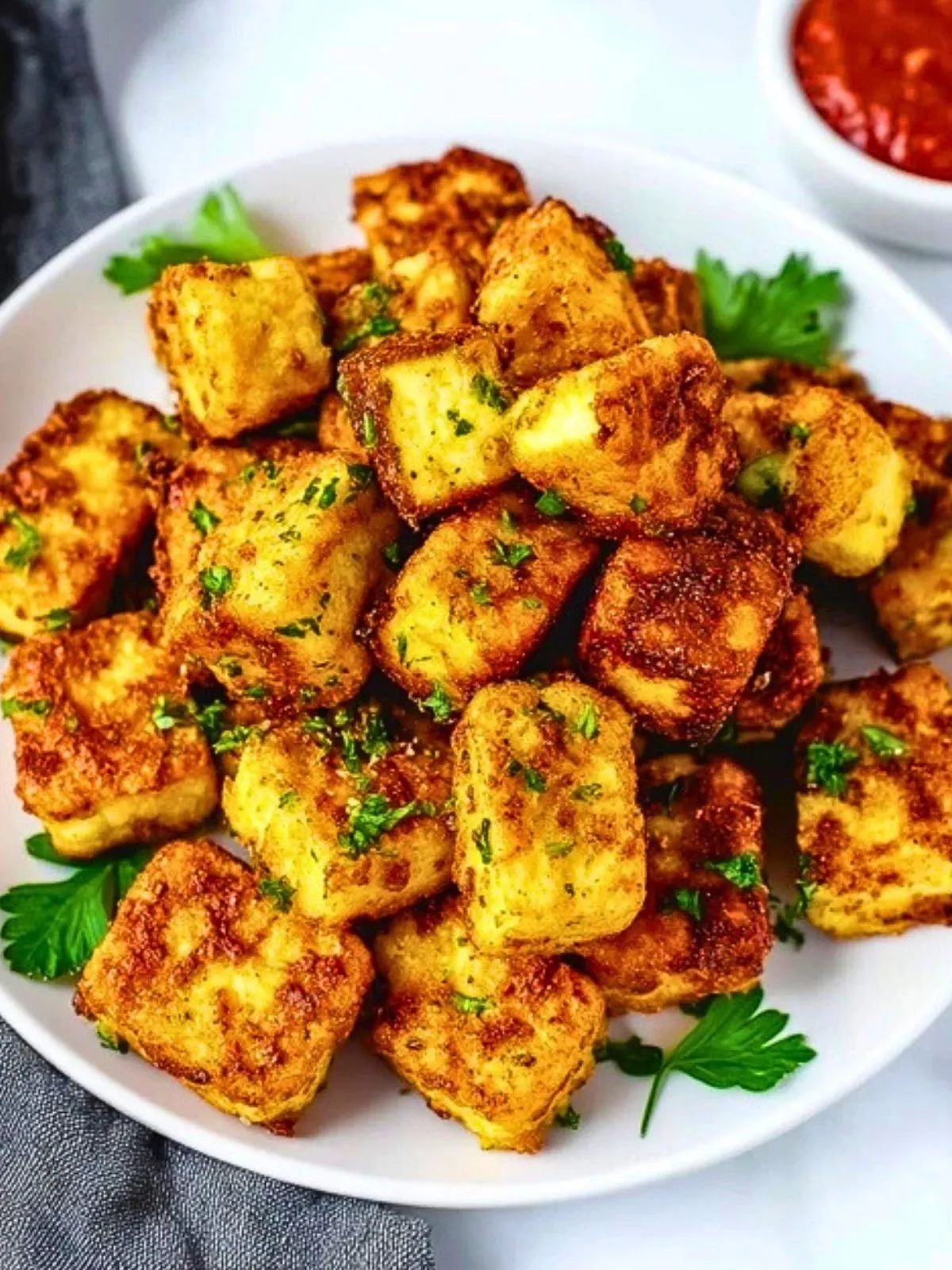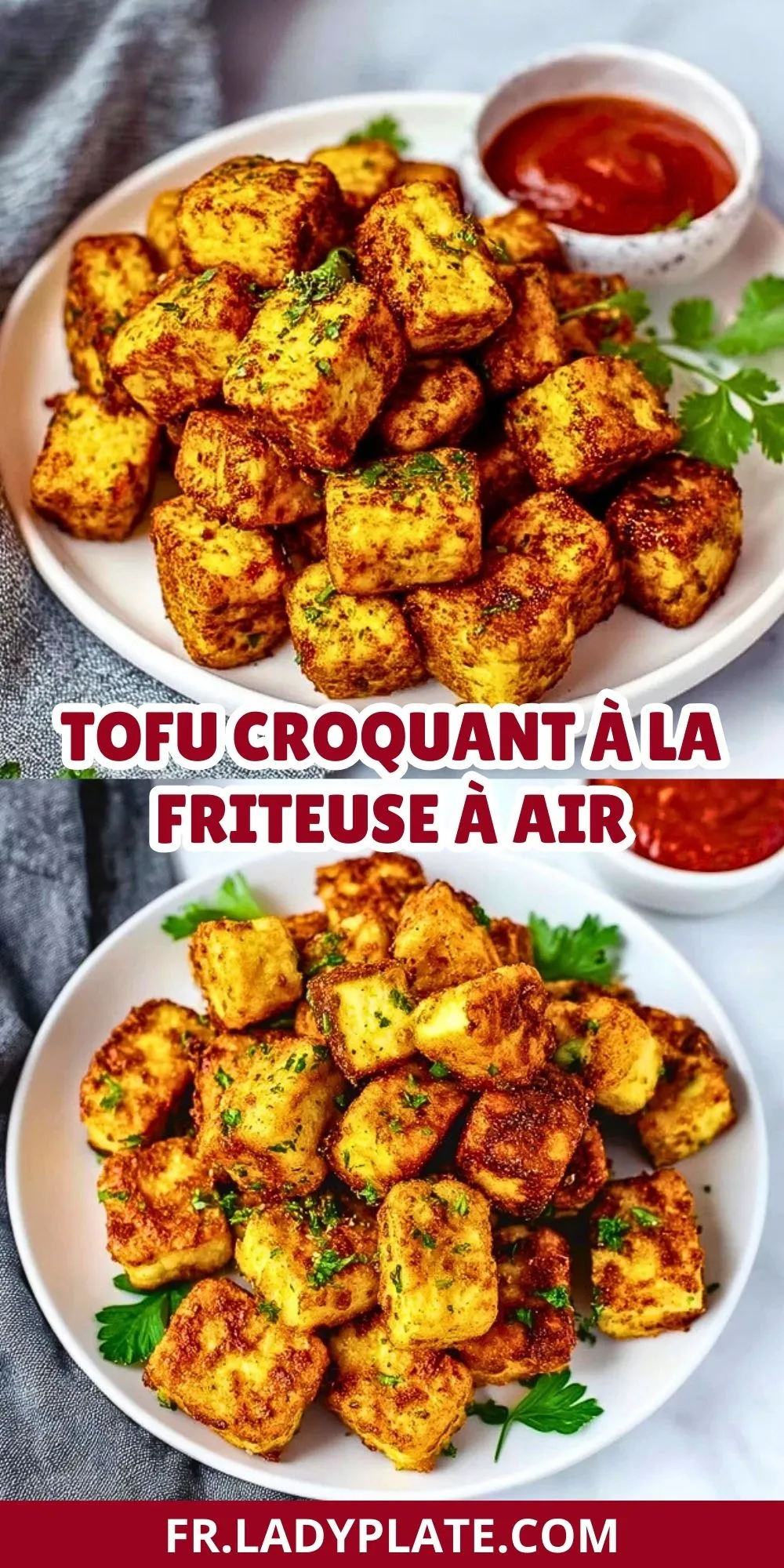 Tofu croquant et doré à la friteuse à air, mariné aux épices et ultra facile à préparer. Ce tofu végétarien, sans friture, est parfait à l’apéritif, en salade, ou comme plat sain et gourmand pour toute la famille.