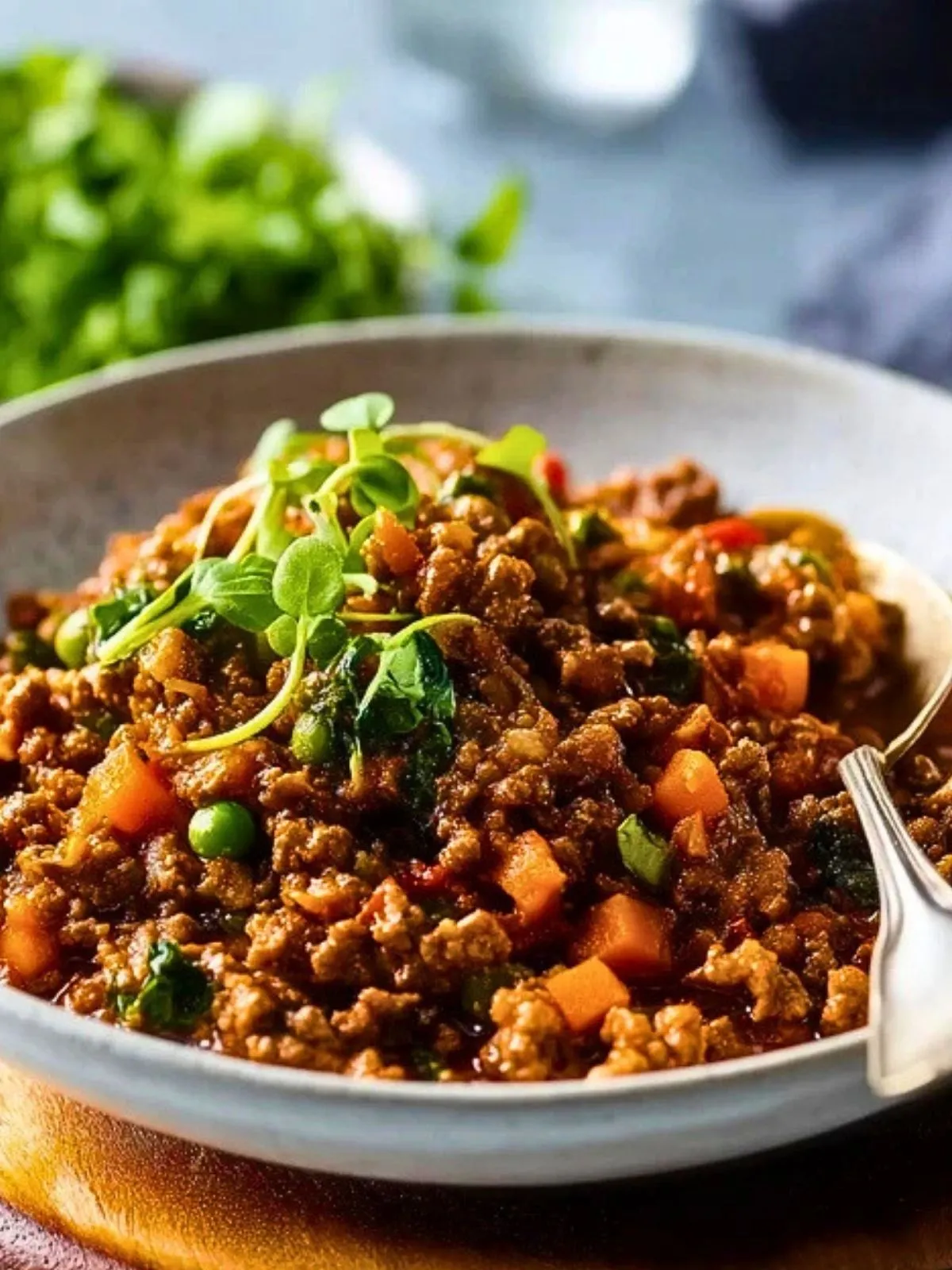 Servez la viande hachée savoureuse bien chaude, accompagnée de riz, de purée de pommes de terre ou de pâtes. Pour un plat plus complet, parsemez de fromage râpé juste avant de servir. Vous pouvez également l’utiliser pour garnir des tacos, des pommes de terre au four ou en base pour un hachis parmentier. Conservez-la dans une boîte hermétique au réfrigérateur jusqu’à 3 jours, ou au congélateur pour une dégustation ultérieure.